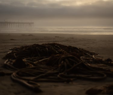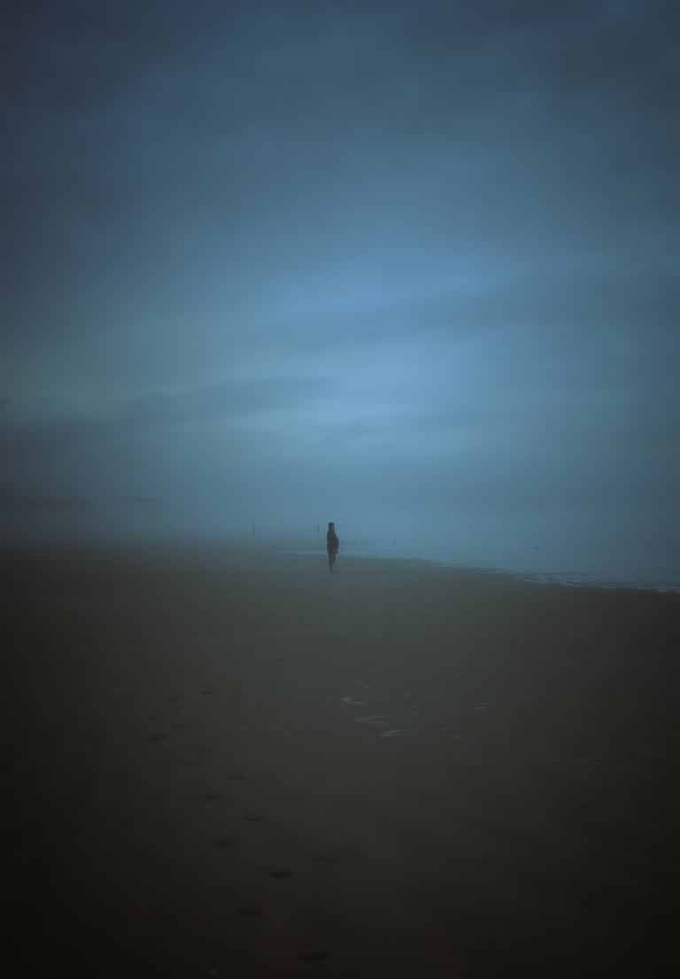 As I started walking, I came upon a morning beach, not the red & orange but the blue. That dark, heavy blue morning we find walking shore side, alone, with the grains of sand that still dream of being rocks. As I walked crooked, toward the everlasting horizon, I came upon a beached log, dilapidated, swollen with years of water, and broken; broken in the way we still are, longing for connection.