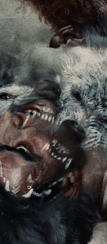 As I walked into the dense and murky green, a large Gray Wolf appeared, not in the way we see them but know them, a large head and indistinguishable eyes.